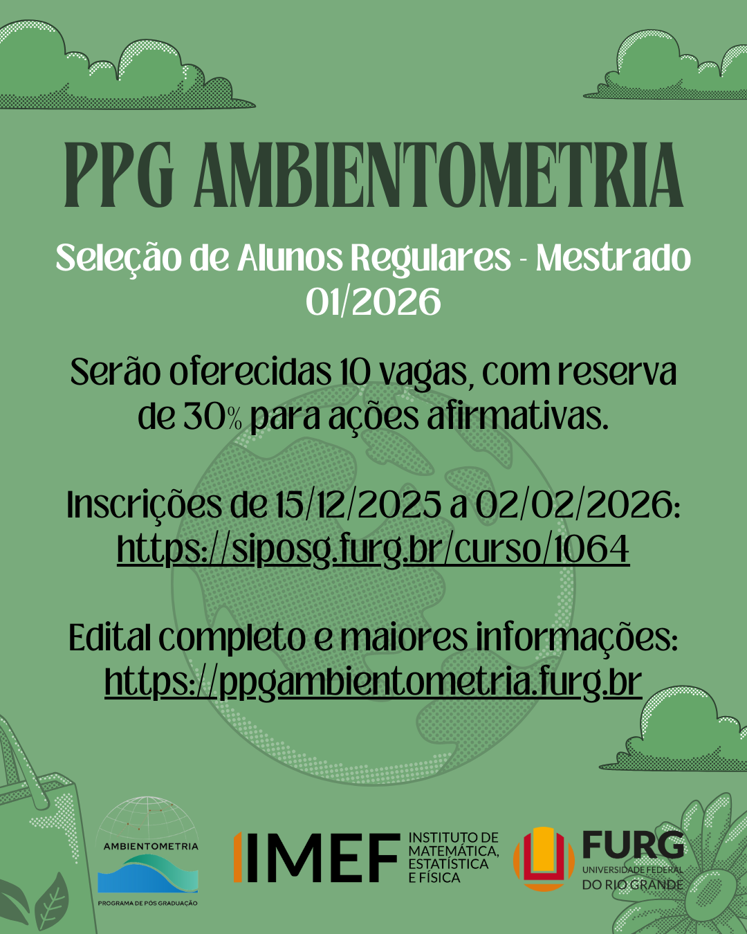 As inscrições vão até o dia 2 de fevereiro através do SIPOSG do Programa: https://siposg.furg.br/curso/1064